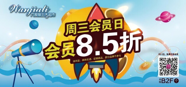 购物囤货就来万家丽生活超市,超值超实惠,省钱更省心。万家丽生活超市每周三会员享全场8.5折(油米盐、高档名酒、特价商品不参与),且消费满额尊享免费停车,更有不定期好礼相送。还在等什么呢,快去购物吧~