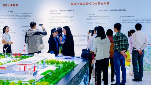 展板分别以奋进中国式现代化的石油之力为主题,展示了中国石油坚持科技自立自强勇当国家战略科技力量、油气保供主力军、坚持绿色发展,2022年上缴各种税费超4000亿元。以赋能大美青海为主题,展示了中国石油作为中央企业,积极践行社会责任,近年来在青海省19个县投入帮扶资金2.5亿元,青海油田连续27年保持青海省第一利税大户和财政支柱企业地位;青海销售推出 “昆仑缘”等系列自有品牌商品,助力当地经济发展和乡村振兴。