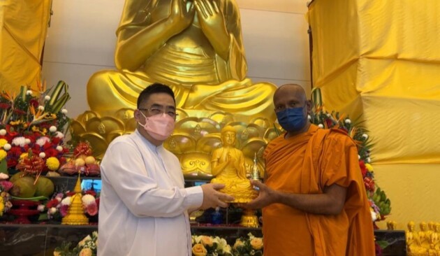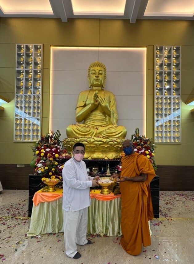 最后,我以恭敬的心礼敬佛法僧三宝并再次感谢尊敬的尊者斯里沙拉南加拉长老,尊敬的释慈德法师,斯里兰卡佛寺僧团,昔加末佛理研修会顾问团及理事们,佛友佛青门,记者朋友,嘉宾朋友们与我们一起见证133尊大小释迦摩尼佛入座礼及给予加持与祝福。同时,也祝大家2022年新年快乐,身体健康,生意兴隆,远离灾难,国泰民安。谢谢。Sadhu Sadhu Sadhu。