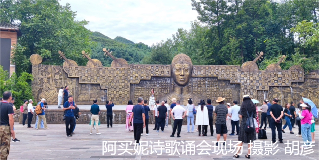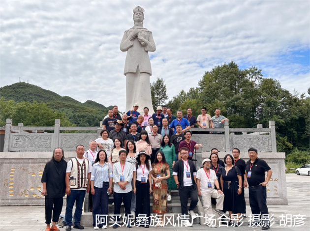 8月13日上午 诗人们来到阿买妮彝族风情广场。阿买妮彝族风情广场,是企业家罗阳出资根据彝族先贤阿买妮的文化精神设计建造。广场纯彝族元素打造,从雕塑、文字、建筑风格等方面,立体展现彝族悠久的历史和厚重的文化。