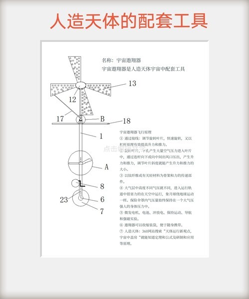 2.太阳能簿膜发电.使人造天体密封仑内空气可调节,温度能适应,人类天地间生活安全有保证。