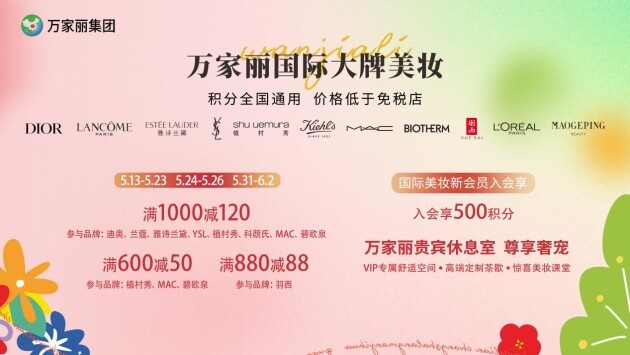 VIP尊享优惠!万家丽国际大牌夏日美妆节