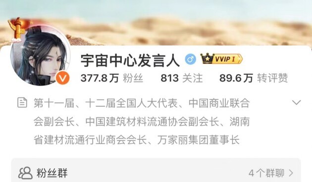 宇宙中心黄董霸气宠粉,不定期抽奖节日福利!万家丽集团黄志明董事长粉丝量已超377.8万,话题阅读量超4.9亿。6月10日端午节20:08,抽奖送:宇宙中心黄金卡、苹果笔记本电脑;大疆运动相机;苹果iwatch S9;万家丽国际大酒店豪华套房体验券。更多活动、更多福利、更多惊喜,请持续关注“宇宙中心发言人”微博!