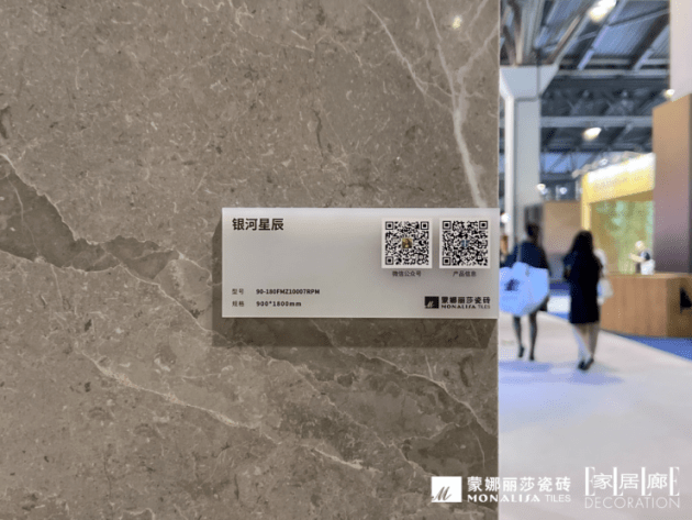 在设计选材方面,展位十分注重绿色和可持续发展,以重复利用理念为核心,打造具有高回收性及复用性的空间,同时选用蒙娜丽莎瓷砖2023年大地色系新品,利用原料低碳、生产过程绿色环保的瓷砖产品,为空间创造更具自然性的纹理及色彩。