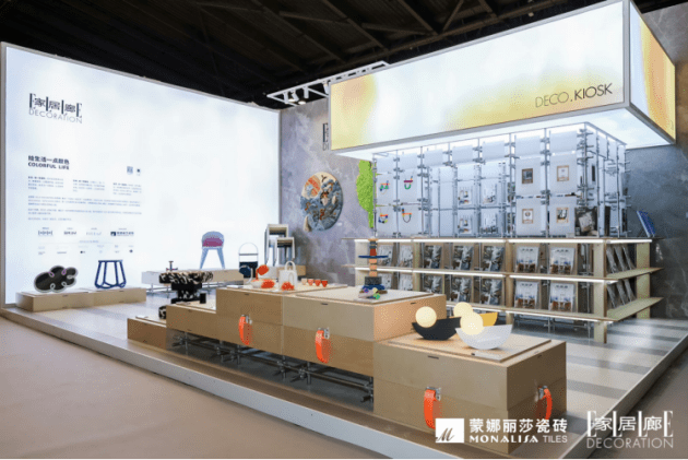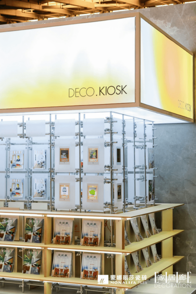 本次《ELLE DECORATION家居廊》联手蒙娜丽莎瓷砖打造的展位,以“给生活一点颜色”为主题,整体设计理念在传统KIOSK的方式及功能上进行重塑,从视觉体系、功能打造、材质逻辑等不同维度,创造出符合当下生活语境的“书报亭”。